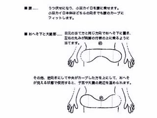 幅が広く丸みのあるデザインなので、両目両耳・首と肩・腰・おへそまわりと大腿部...など、一度に広範囲を温められることが大きな特徴です。